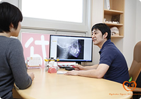 お口の中は人それぞれですので、お一人お一人に合った最適な治療方針や成長予測を検討いたします。計画書を作成し、治療費も明確に提示したうえで、患者様の希望等もふまえ最終的な治療方針を決定していきます。