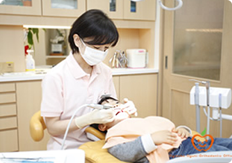 装置の調整、習癖等のトレーニング、歯みがき指導または歯面研磨、口の中や顔の写真撮影などを行います。